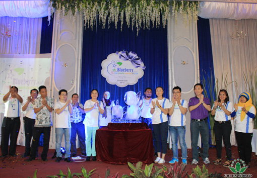 La cérémonie d'ouverture a été présidée par le maître de conférences de haut niveau de la filiale en Indonésie M. Junai, Présidente de Green World Mme Deming Li, Mme adjointe Ying Liang et l’équipe de gestion de la filiale en Indonésie sont montés sur scène ensemble dans les chaleureux applaudissements pour inaugurer la cérémonie d'ouverture de Green World (Indonésie) Premier Festival du Bleuet.
