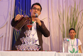 Consultant de la santé de la filiale en Indonésie M. Tommy a introduit les connaissances du bleuet et les produits de bleuets de Green World, et a fait sur place une magnifique démonstration sur l’expérience antioxydante de 《Bleuet Breuvage(Haut VC)》. Tout le monde était inspiré par cette expérience antioxydante.