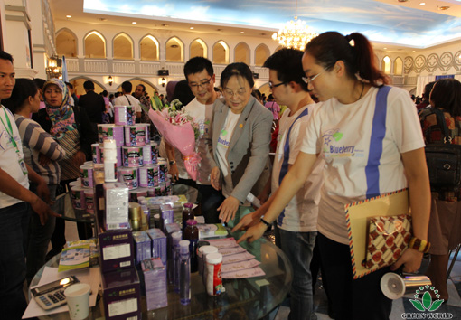 La zone d'exposition de produits de bleuets a attiré beaucoup d'attention, ces produits sont Liquide Concentré de Bleuet, Bleuet Super Nutrition, Bleuet Cellulose, Bleuet Soin de la Vue Gélule, Bleuet Anti-Âge Capsule, Bleuet Bonbon, Bleuet Breuvage, Jus de Bleuet, Bleuet Vin, Bleuet Crème de matin, Bleuet Crème de soir, Bleuet Essence, Bleuet Crème pour les mains, Bleuets Masque, etc. En plus de présentation de la série de produits de bleuets de Green World, la filiale a lancé la nouvelle variété de produits de bleuets en 2015, les distributeurs participant à la cérémonie se sentait profondément la force de Green World et des résultats fructueux dans la recherche et le développement de bleuets à travers l’exposition de la série de produits de soins de santé de bleuets, de la série de produits de soins de la peau de bleuets ainsi que de la série de la nourriture de bleuets.