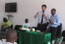 Le directeur informatique de la filiale de Green World à l’Angola M. Liu Xiaowei a interprété les problèmes liés au développement du marché. Il a présenté le plan de marketing dans la province du Cabinda et a expliqué les techniques et les méthodes dans le processus de l’exploitation de développement du marché en encourageant les distributeurs à participer à des formations organisées par la filiale et les magasins. Les distributeurs participants ont applaudi et montré une grande confiance et la motivation.