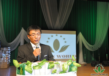 Enfin, M. David L. Zhang a encouragé les distributeurs d’insister la profession et l'intégrité de la casue de Green World. 《Il n'y a pas de raccourcis dans la vie, le succès dépend des efforts, tant travail côté à côte avec Green World, le rêve va être en réalité.》 Le discours passionnant de M. David L. Zhang a pris à sa fin, le lieu de cérémonie éclata soudainement de chaleureux applaudissements.