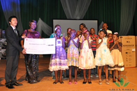 Directeur de la filiale de Green World à Lagos du Nigeria M. Hao Shang a fait un don de100000 nairas au nom de l’équipe de gestion du Nigeria à une école locale pour les orphelins