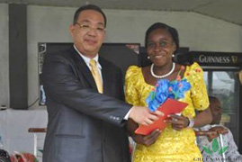 Au cours de la réunon, on a récompensé de hauts dirigeants gagnant le prix du voyage international à Dubaï au début de 2015. M. Présentateur James a invité ces gagnants à aller sur la scéne pour recevoir leurs certificats décernés par M. Budiman Prasetyo au nom du directeur de la filiale à Calabar.