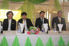 L'équipe de gestion de la filiale à Lagos du Nigeria était assise sur le podium, de gauche à droite: Mlle conférencier Xu Ruijie, M. Li Xiang, directeur de calcul, M. Shang Hao, directeur de la filale, M. Budiman Prasetyo, le responsable du département de l'éducation de Green World Afrique