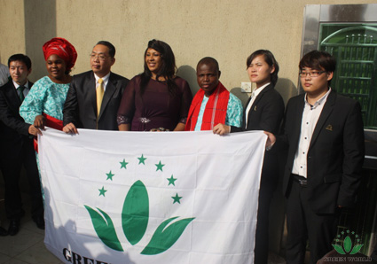 L'équipe de gestion de Green World à Lagos du Nigeria a pris la photo avec Mme Opaleye (deuxième à gauche), Mme Frances Ngozi (quatrième à gauche), M. Joseph Opaleye (cinquième à gauche)