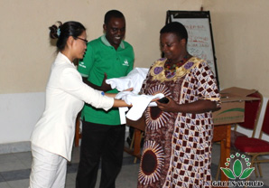 Le 12 mars 2015, M. Budiman, chef du département de l'éducation de Green World Afrique, avec Mme Masha Ma ont visité la boutique de Madame Anisha à Dar Es Salaam, la capitale de la Tanzanie.