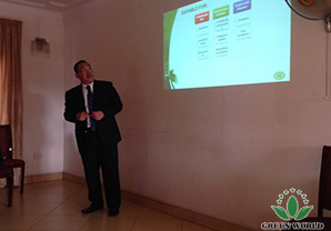 31 mars 2015, M. Budiman a poursuivi la formation de leaders à Jakiba Continental Hôtel en prenant la formation de produits. M. Budiman a expliqué chaque produit profondément et sa présentation a construit la confiance à tous les leaders de l'Ouganda à élargir le marché de Green World en Ouganda.