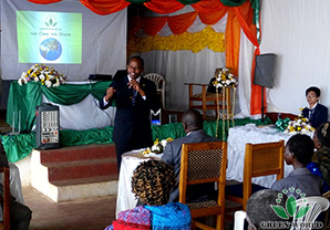 M. Budiman a livré un discours sur Green World-changer la vie, et traduit en langue locale par M. James, maître de conférence local de Green World en Ouganda
