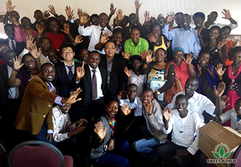 12 avril 2015, l'équipe de la filiale de Green World en Ouganda était venue à Mukono, la ville voisine de Kampala pour tenir la conférence sur Green World-changer la vie. La conférence était débutée par un discours de motivation de M. Jeff Li.