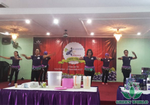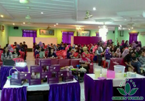 Afin d'accroître la connaissance des consommateurs de Green World à Bengkalis sur des produits de bleuets, Dr.Tommy en tant que maître de cette activité, a introduit détailléement les avantages des produits de bleuets de Green World et a fait une démonstration sur la résistance à l'oxydation de bleuets, cette démonstration a gagné des applaudissements et des acclamations, ils ont fait l'éloge des produits de bleuets de Green World. Après le discours de Dr.Tommy, le présentateur a invité 4 consomateurs sur scène à partager leurs sentiments après l'utilisation de produits de bleuets de Green World. Ils ont respectivement partagé l'effet d'amélioration de Concentré Liquide de Bleuet sur de divers problèmes de santé.