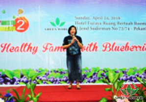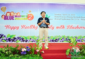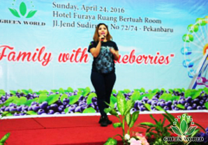 Ambassadrice de bleuet de Green World en Indonésie Mlle Yenny Wibowo a pris un discours au nom de M. Junxian Song et il a souhaité la réunion gagner un succès. Consultant de santé de Green World en Indonésie M.Tommy a expliqué les connaissances en santé. Il a souligné les avantages de bleuets pour la vue des enfants, le développement du cerveau et la motricité. Au cours de la réunion, Mme Lucy de Bengkalis a partagé le témoignage de bleuet. Enfin, le distributeur de diamant M. Anthony a annoncé des programmes de promotion de bleuets et le liste des gagnants du concours de peinture.