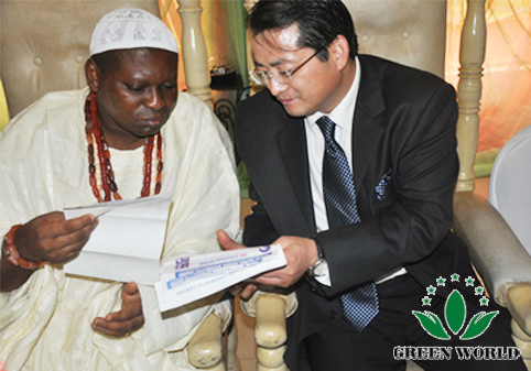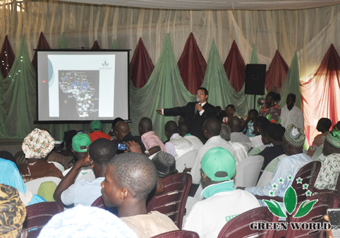 Le 27 juillet 2015, avec la bruine, M. David L. Zhang, vice-président de Green World et président de Green World Afrique, M. Hao Shang, directeur de la filiale à Lagos du Nigeria et Mlle Ruijie Xu, la maître de conférences du département de l'éducation et de la formation sont arrivés à Olagbami Osekun hall dans la région Ogbomosho de l'État d'Oyo pour participer aux séances d'information d'affaires de Green World. M. David L. Zhang est arrivé dans la boutique de Opaleye Joseph, un manager 1 étoile ainsi que le meilleur chef d'équipe de la région Ogbomosho pour prendre la visite.