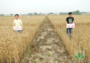 Droite: le champ de blé sans utilisation de Nutriplant Organic Plus Fertilizer Water-soluble "Engrais Liquide Organique" de Green World