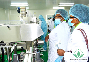 Puis, accompagnés du personnel professionnel et technique, les distributeurs ont visité l’atelier de production de Green World.
