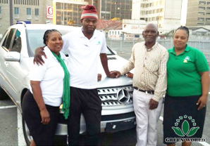 M. KHAYA a changé d'emploi pour travailler auprès d'un distributeur de Green World. Il a gagné le prix de voiture et le prix de voiture commerciale, et a acheté un Mercedes C280. Il a dit: «Je fais le conducteur tant d'années, j’ai toujours aidé mon patron à conduire, maintenant Green World a me donné ma propre voiture》. Dans la première moitié de cette année, Mme ANDISWA et lui ont développé activement le marché ensemble, ouvert deux magasins, ainsi que aidé deux distributeurs à réussir à ouvrir les nouveaux magasins.