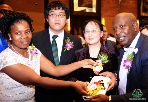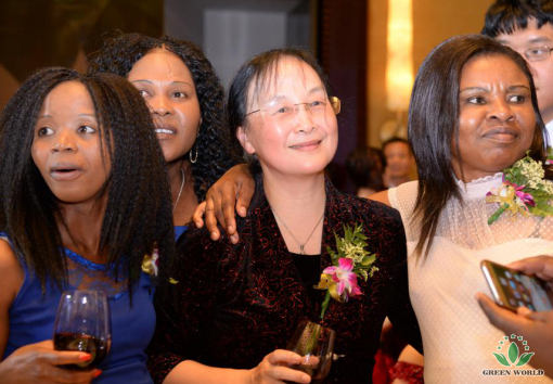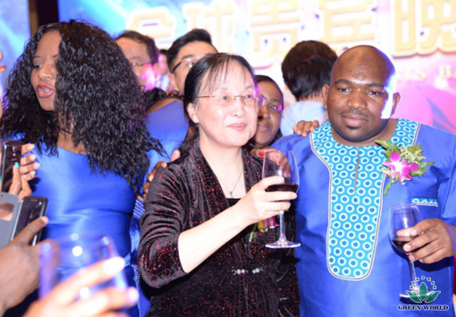 Au cours du VIP dîner, Dr Deming Li a conduit les cadres supérieurs à proposer un toast aux distributeurs de Green World pour exprimer sa gratitude et ses vœux. Mme Mbele Malter Vanje, dirigeante supérieure de Johannesburg en Afrique du Sud, n'a pas pu aider son excitation et a exprimé sa gratitude à la Dr Deming Li dans son discours.