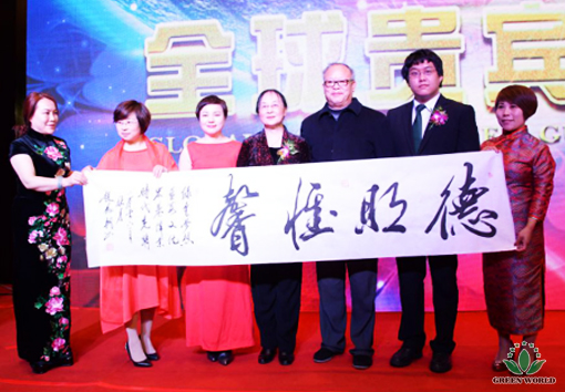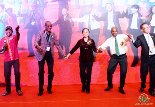 Dr Deming Li, présidente de Green World, accompagnée de M. Christopher Li, assistant du président, s'est adressée au public lors du VIP dîner. Elle a annoncé une bonne nouvelle que le 2 novembre, un contrat sera signé pour lancer une nouvelle base de production comme complexe de production complémentaire à la production domestique à partir de laquelle des produits de qualité seraient fournis pour satisfaire les demandes mondiales.
