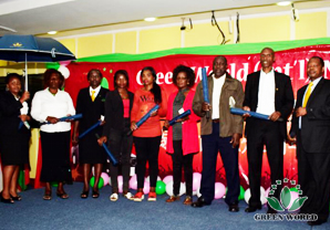 Mme Thembi Ngidi, distributeur de haut niveau de l'Afrique du Sud a décerné les coupes.