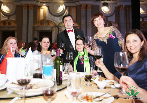 Au dîner heureux et chaleureux, Dr Deming Li, présidente de Green World, et les distributeurs de la région eurasienne (dont la Russie, la Moldavie, la Tchèque, la Lettonie, le Kazakhstan, l'Ukraine et l'Arménie), la région africaine (y compris l'Afrique du Sud, le Lesotho, Le Botswana, l'Ouganda, le Rwanda, le Zimbabwe, le Kenya, la Zambie et la Tanzanie), la région nord-américaine (y compris l'Amérique et le Canada) et la région chinoise ont soulevé leurs lunettes pour les efforts inlassables et le travail acharné de tous les membres de la famille de Green World ainsi qu'un avenir plus splendide de Green World.