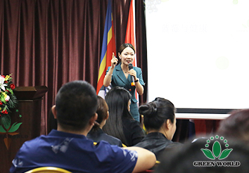 Mme Zheng Huadan, maître de conférences de la section chinoise de Green World Institut International de Commerce explique la «Culture d'entreprise de Green World »
