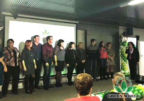 Avant la fin de la réunion, Mme Marina, ambassadrice de deux carats, a présenté le prix de la nouvelle ambassadrice du diamant d'un carat, Mme Lyudmila, et a prononcé un discours inspirant par l'équipe. Enfin, en tant que représentante, Mme Irina, ambassadrice de la Couronne, Marina, ambassadrice du diamant deux carats, Mme Lyudmila, ambassadrice du diamant deux carats, a remercié la filiale de Green World en Eurasie etGreen World Institut de Commerce International pour leurs efforts en vue de la mise en place du système de formation . Jusqu’à présent, la réunion de formation et de remise de prix des distributeurs à Arzamas s’est terminée avec succès par le chant de tous les distributeurs.